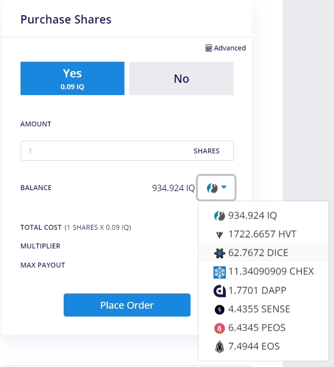 ❗️What currency does the PredIQt market payout?The payout to winning shares will always be in the market currency! Regardless of the token you used to place the order, the payout will be in the market currency. In this case IQ.